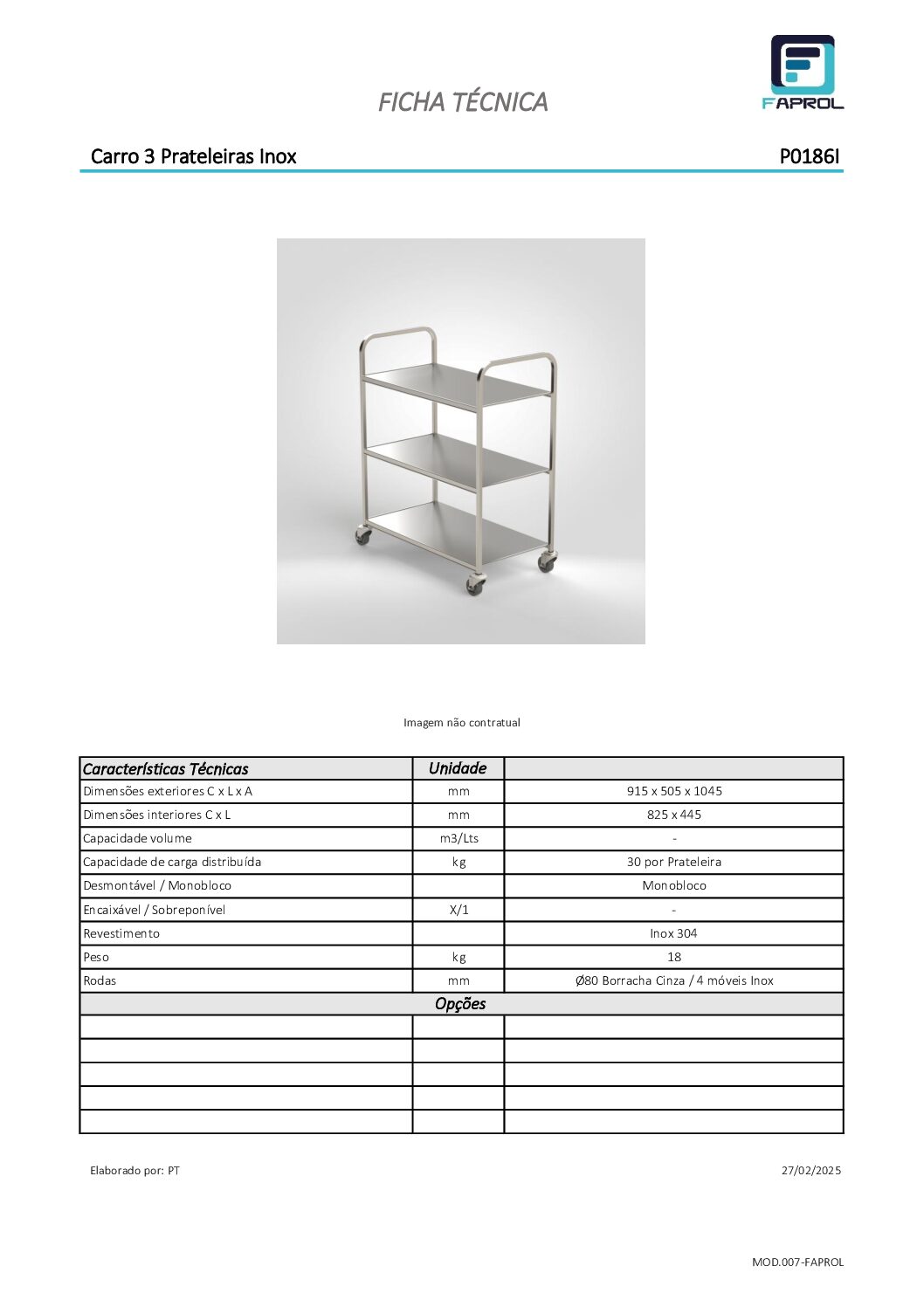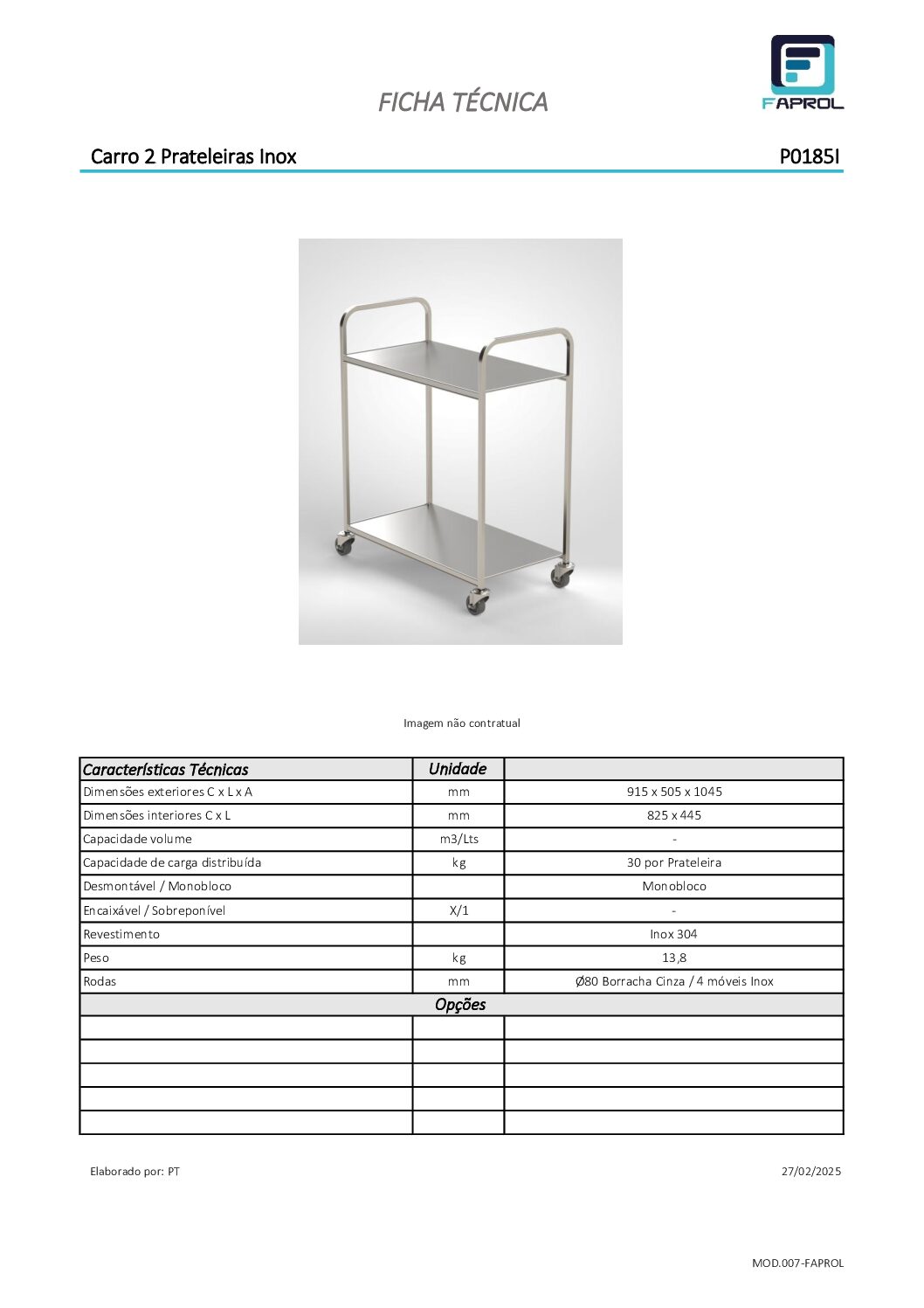 Chariot à 2 ou 3 étagères en acier inoxydable, offrant une mobilité efficace pour le transport d’articles dans les zones commerciales et industrielles. Chariot à 2 ou 3 étagères en acier inoxydable, fabriqué avec une structure renforcée et une capacité ajustée, facilitant le réapprovisionnement et l’organisation des produits. Capacité de charge de 30 kg par étagère.