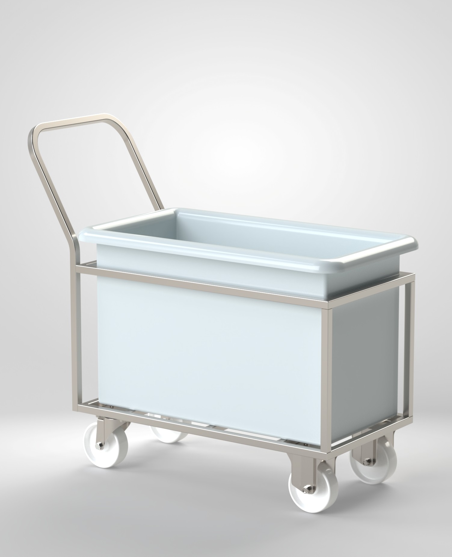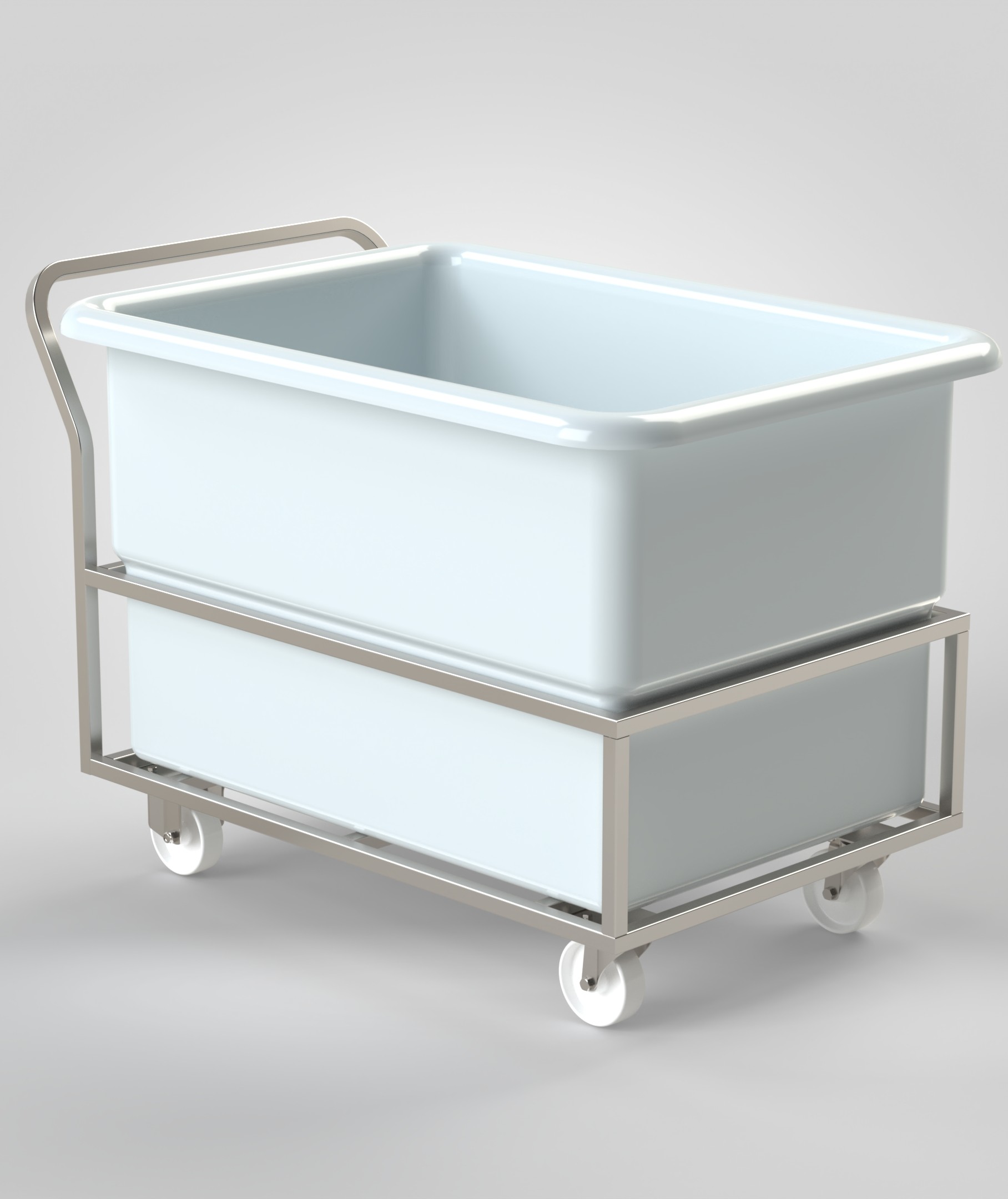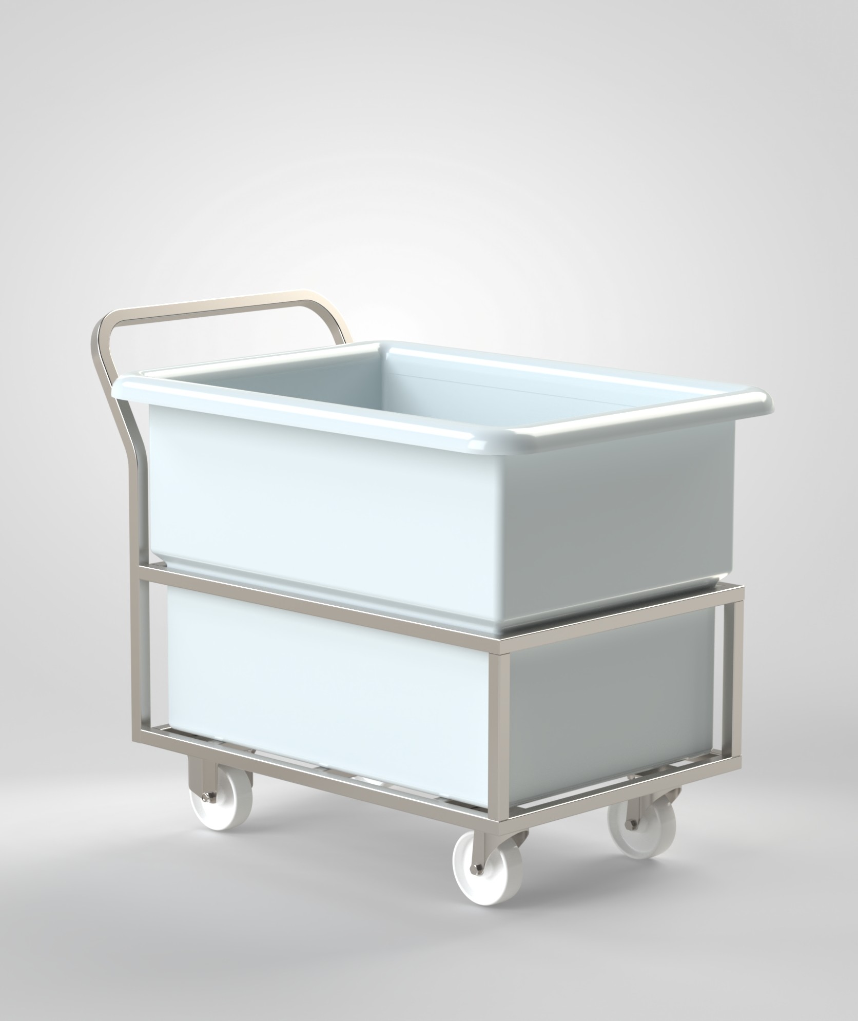 Chariot Blanchisserie 100L/250L/400L en acier inoxydable, structure monobloc, capacité de charge 400 kg.