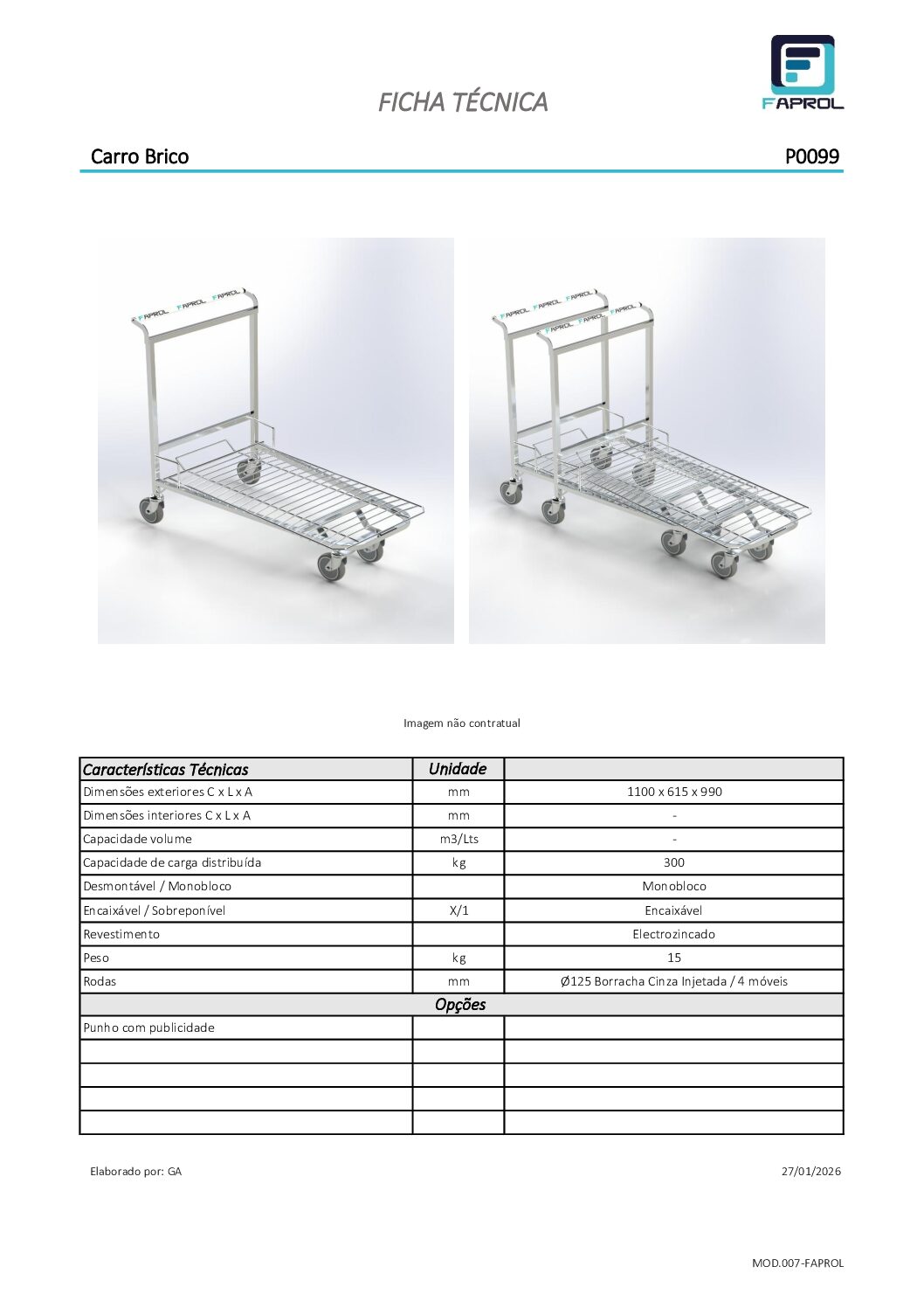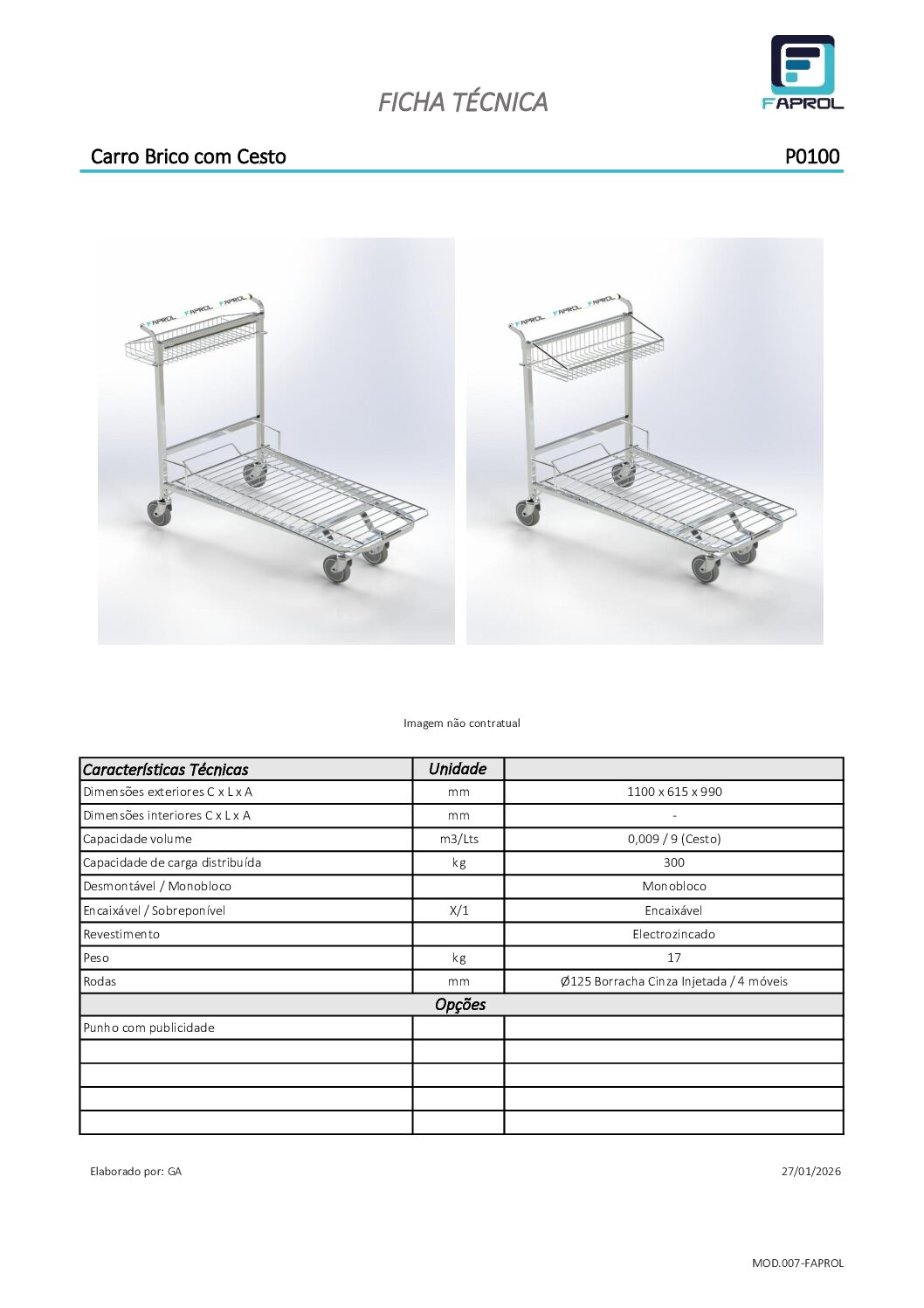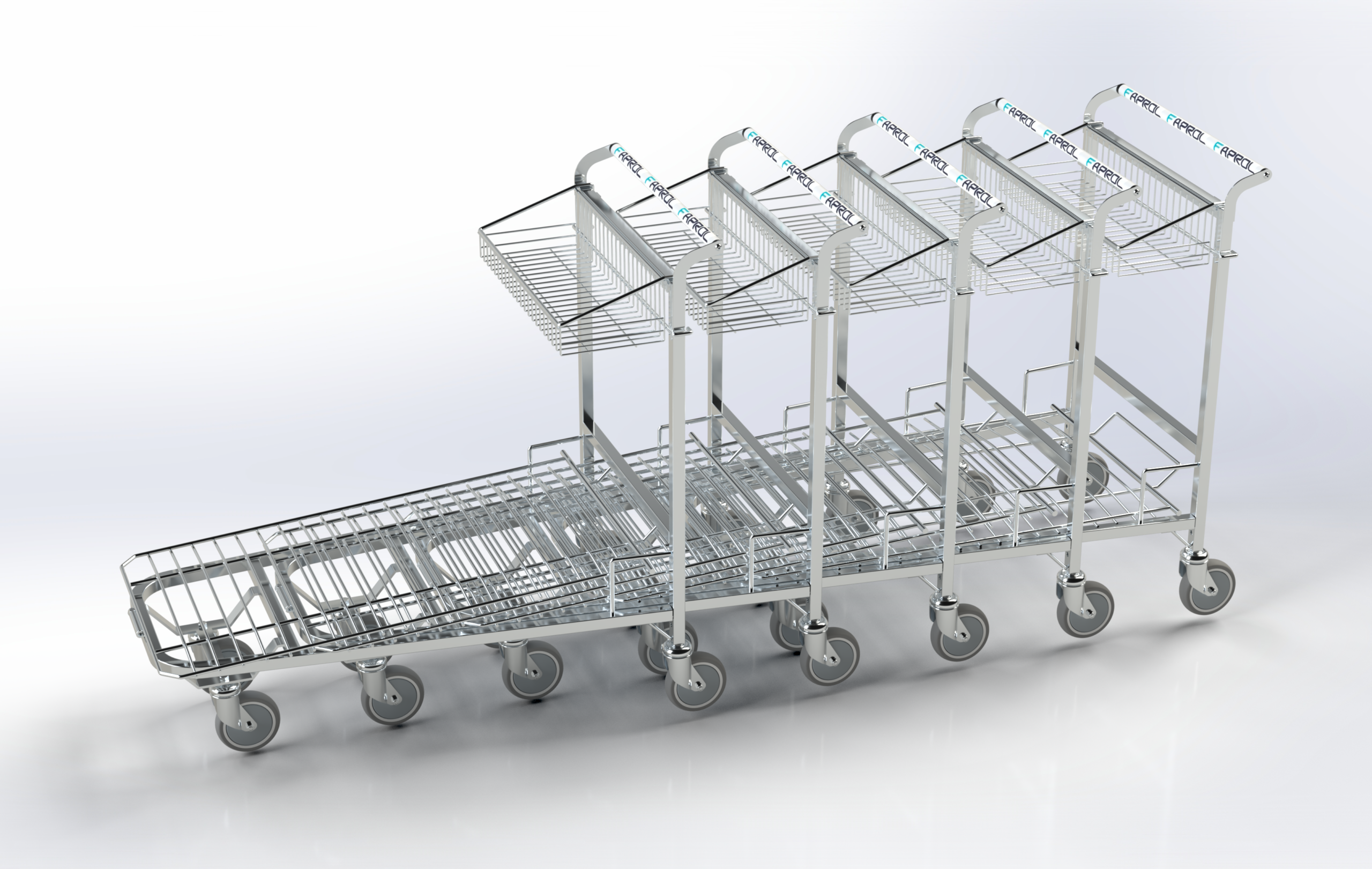 Le Chariot Brico offre une mobilité efficace pour le transport d’articles dans les zones commerciales et industrielles. Sa plateforme emboîtable est idéale pour les magasins de vente au détail, les marchés et les magasins de bricolage. Doté d’une structure renforcée et d’une capacité réglable, il facilite le réapprovisionnement et l’organisation des produits. Le panier est transportable vers l’avant ou vers l’arrière, équipé d’une poignée à la couleur ou à la marque du client et d’un monnayeur. Capacité de charge : 300 kg.