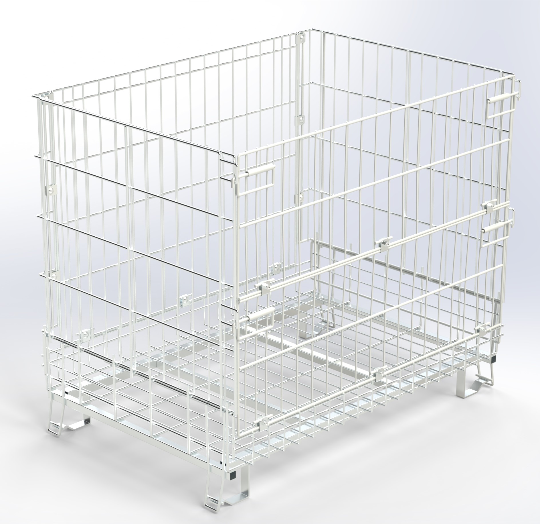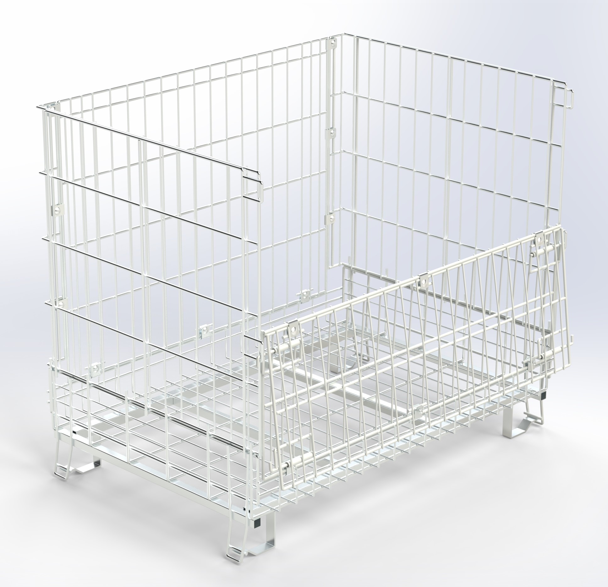 Conteneur pliable empilable, structure en fil métallique avec demi-porte pour un accès facile. Ce conteneur pliable empilable 2+1 statique permet de gagner de la place pendant le stockage et le transport. Capacité de charge de 600 kg.