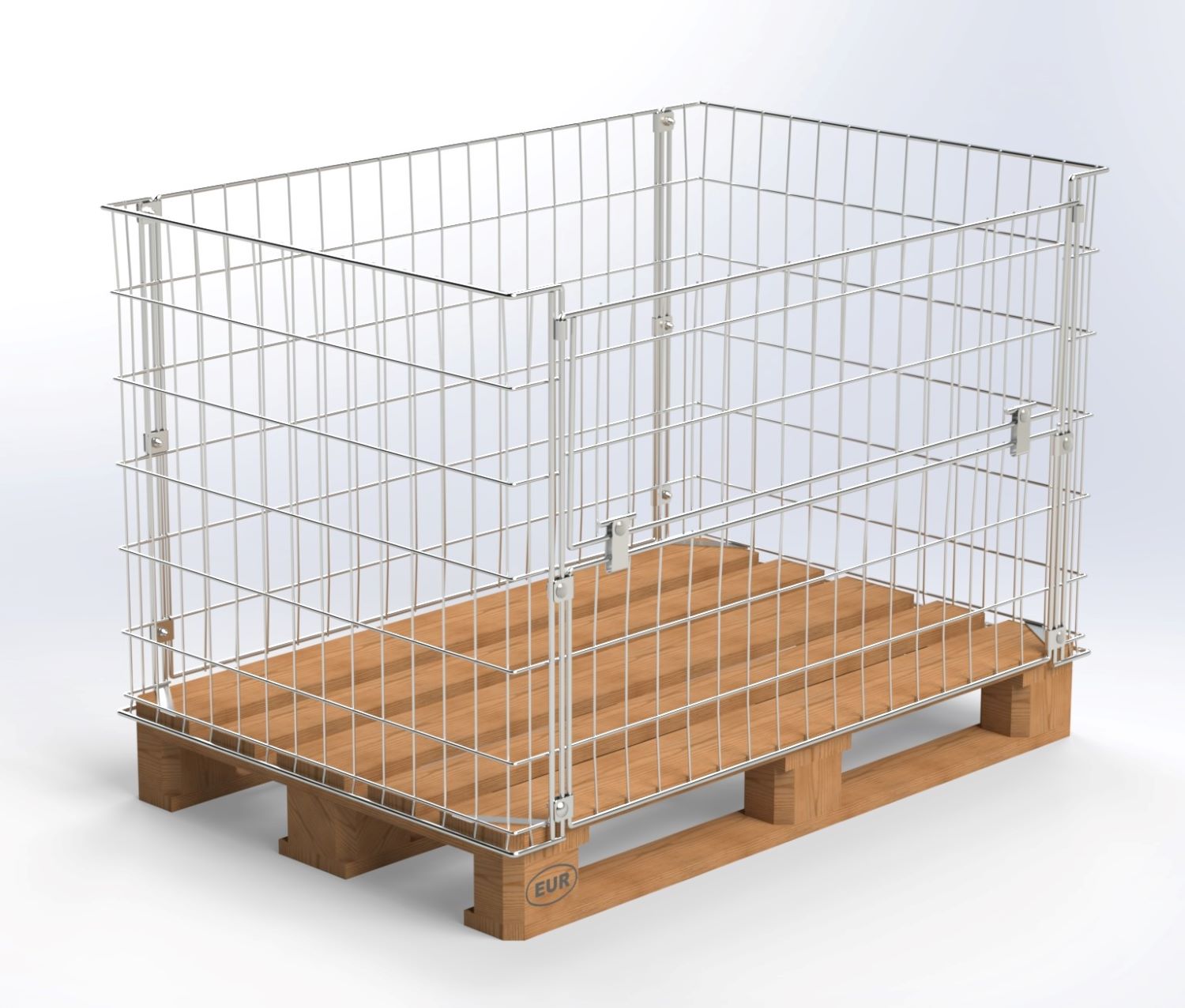 Rehausse palette métalique 1200 x 800mm avec demi-porte sur le côté de 1200 mm. Rehausse palette métalique 1200x800mm, pliable et non empilable, construction en fil métallique avec demi-porte pour un accès facile. Structure idéale pour optimiser l’espace dans les entrepôts.