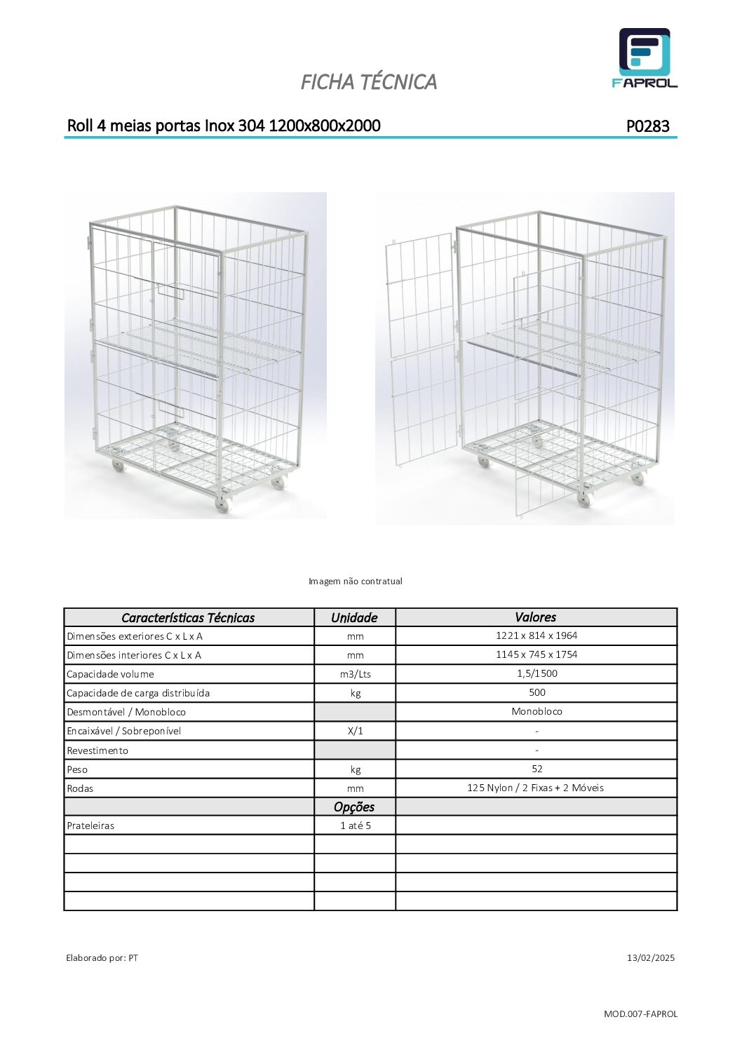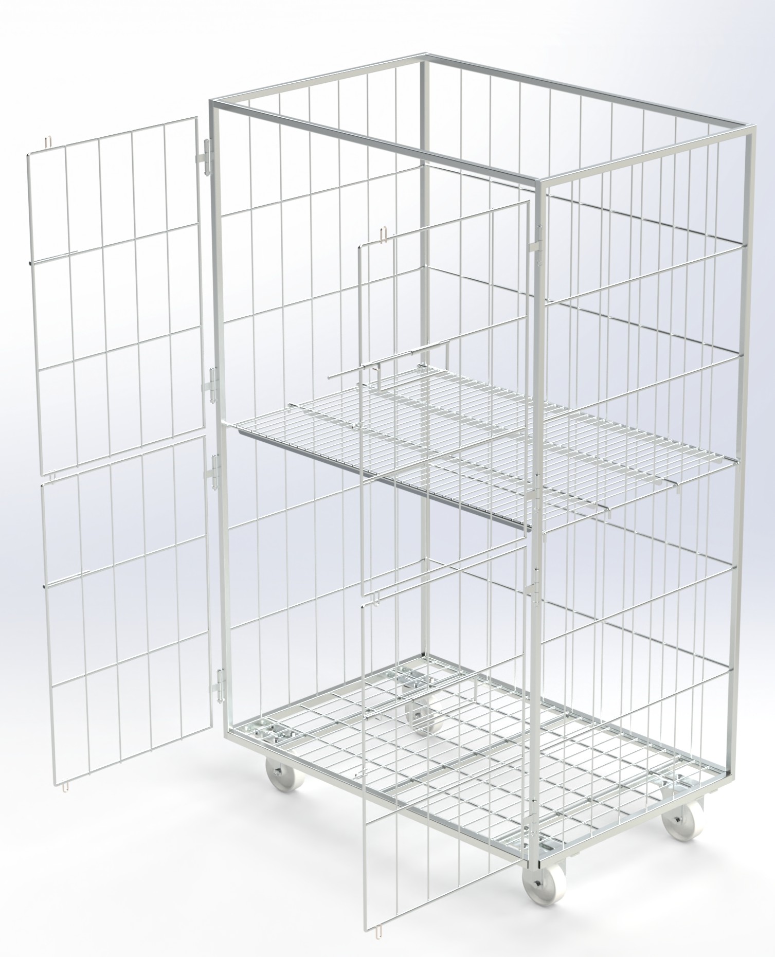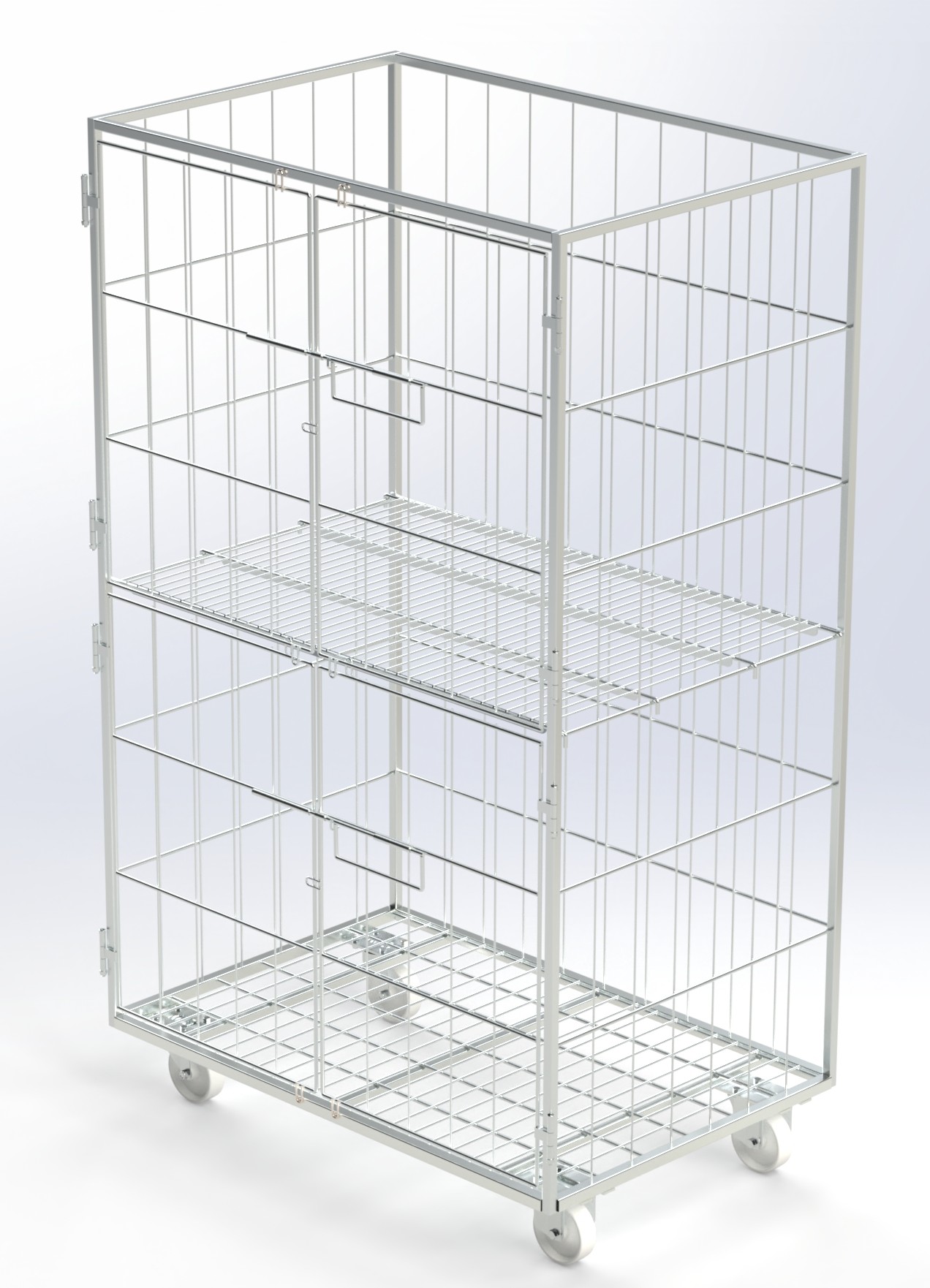 Le Roll Ronteneur à 4 demi-portes en acier inoxydable 1200x800x2000mm est idéal pour le transport sûr et organisé de produits alimentaires. Option jusqu’à 5 étagères.